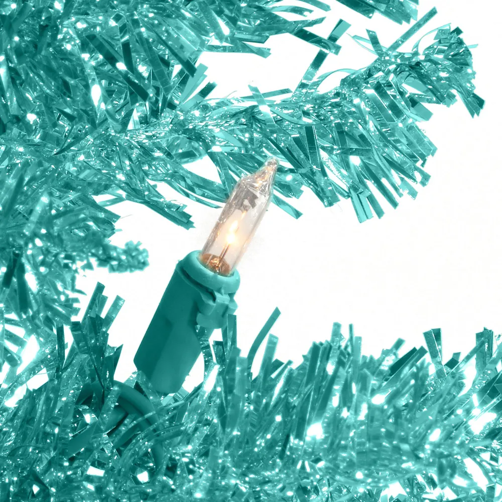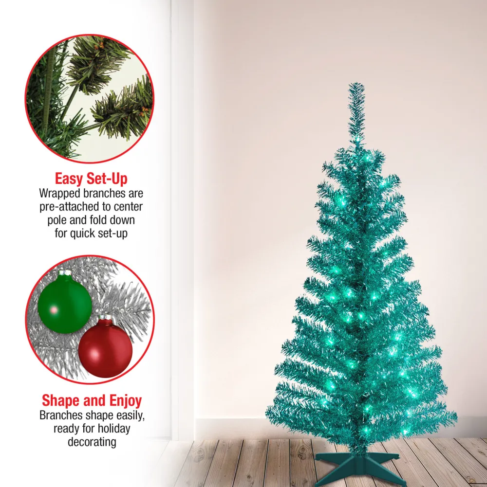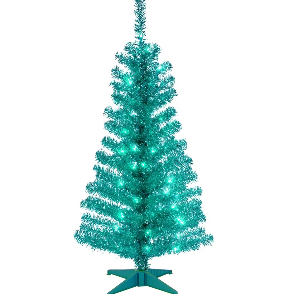 This Distinctive 4′ Artificial Tinsel Tree Offers A Modern Twist On Traditional Holiday Decor. It’s Made Of Pvc In A Turquoise Metallic Tone And Features 110 Hinged Branches, Which Are Flame-Retardant And Resistant To Fading, Odor, And Mildew. It’s Meant For Indoor Use Only; We Love That It’s Pre-Strung With 70 Clear Lights, Which Remain Lit Even If A Bulb Burns Out. Plus, This Tree Comes With A Matching Stand, So You Have Everything You Need To Set It Up Right Away — When It Arrives, Just Arrange The Branches However You Like.