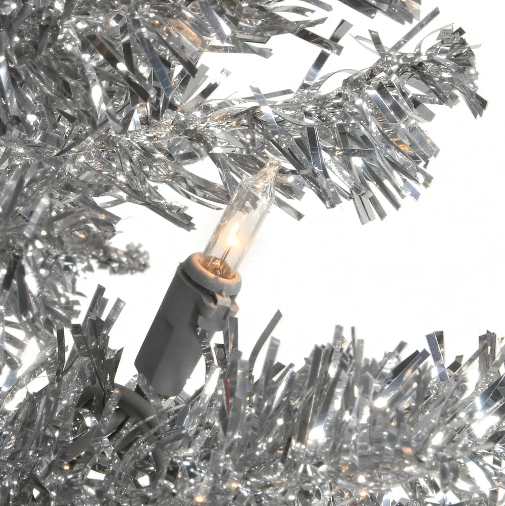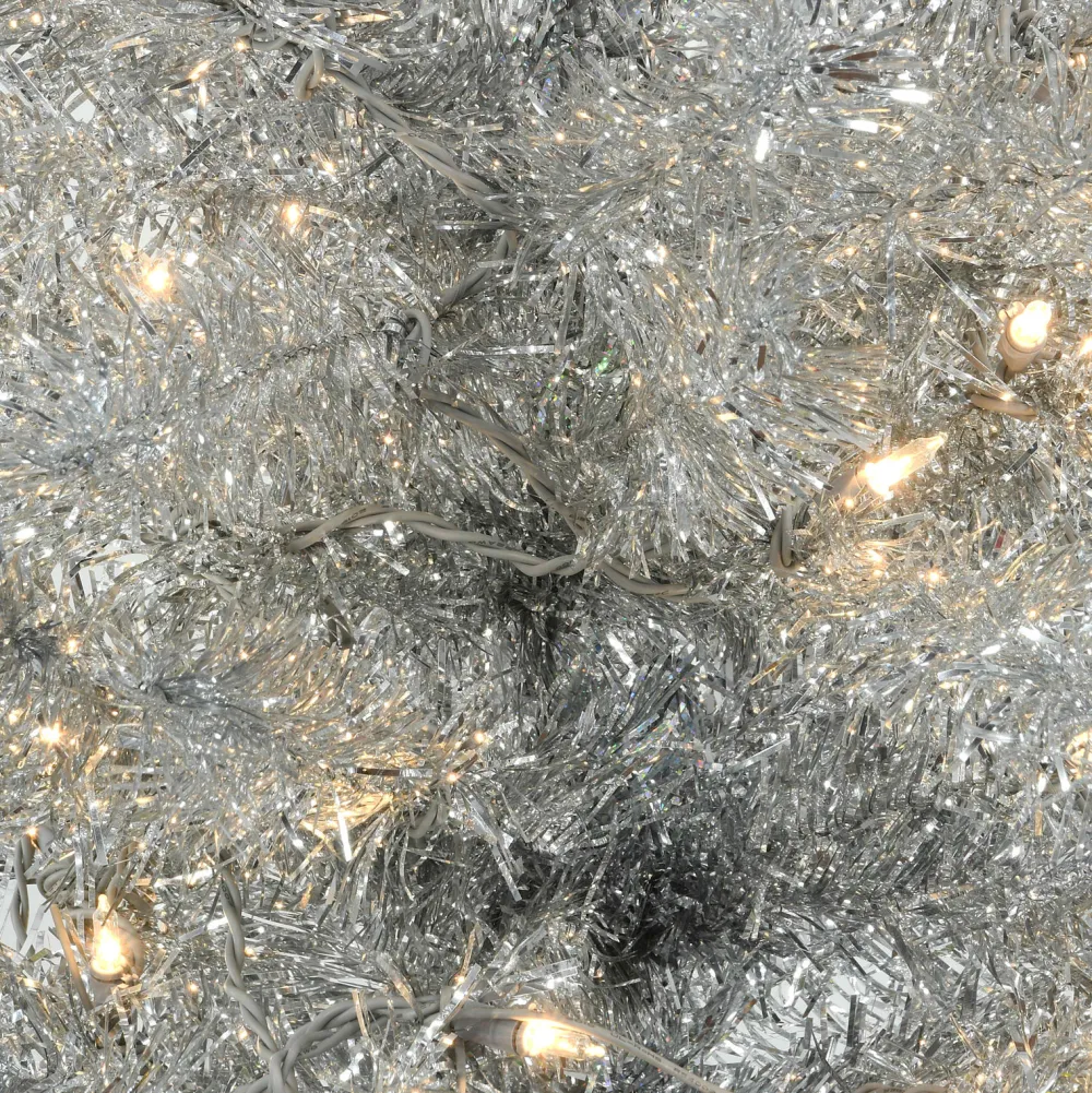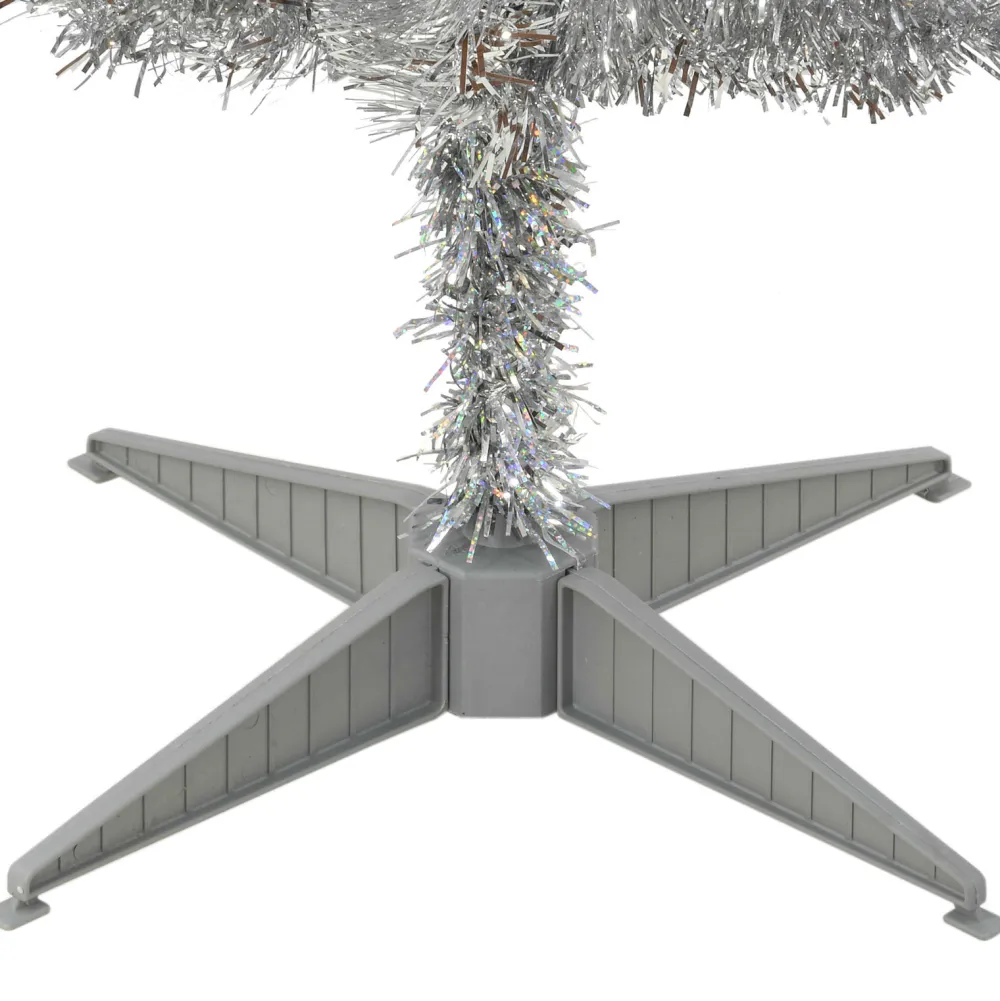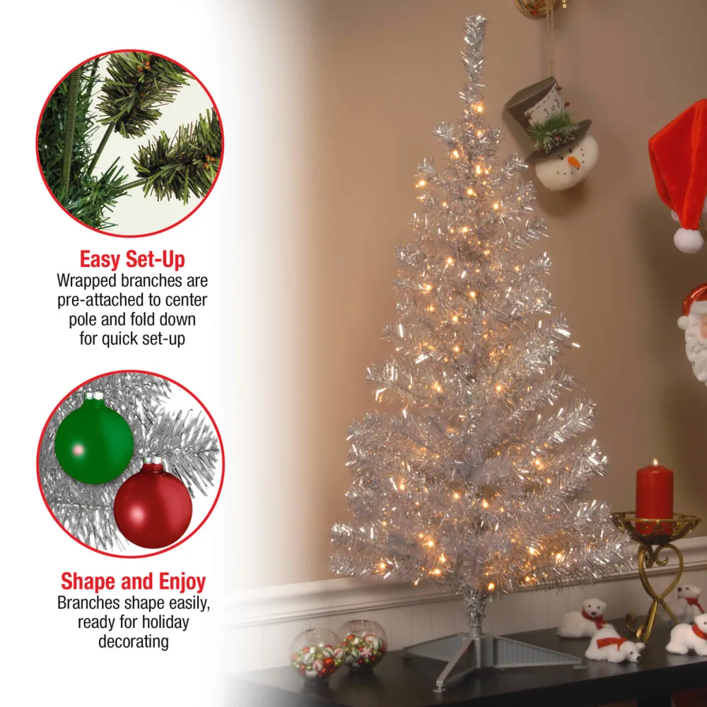 Cut Down On Holiday Hassle With This Sparkly, Slender Artificial Christmas Tree. It Has A Plastic Center And Metal Stand, With A Slim Shape That’s Ideal For Smaller Living Rooms Or Decorating Entryways. The Faux Branches Are Hinged With Silver Tinsel Pine Needles That Remind Us Of A Moonlit Walk Through The Woods On Christmas Eve. We Love That This Christmas Tree Comes Pre-Light With Warm White Lights, So All You Have To Do Is Add Ornaments And Presents Underneath.