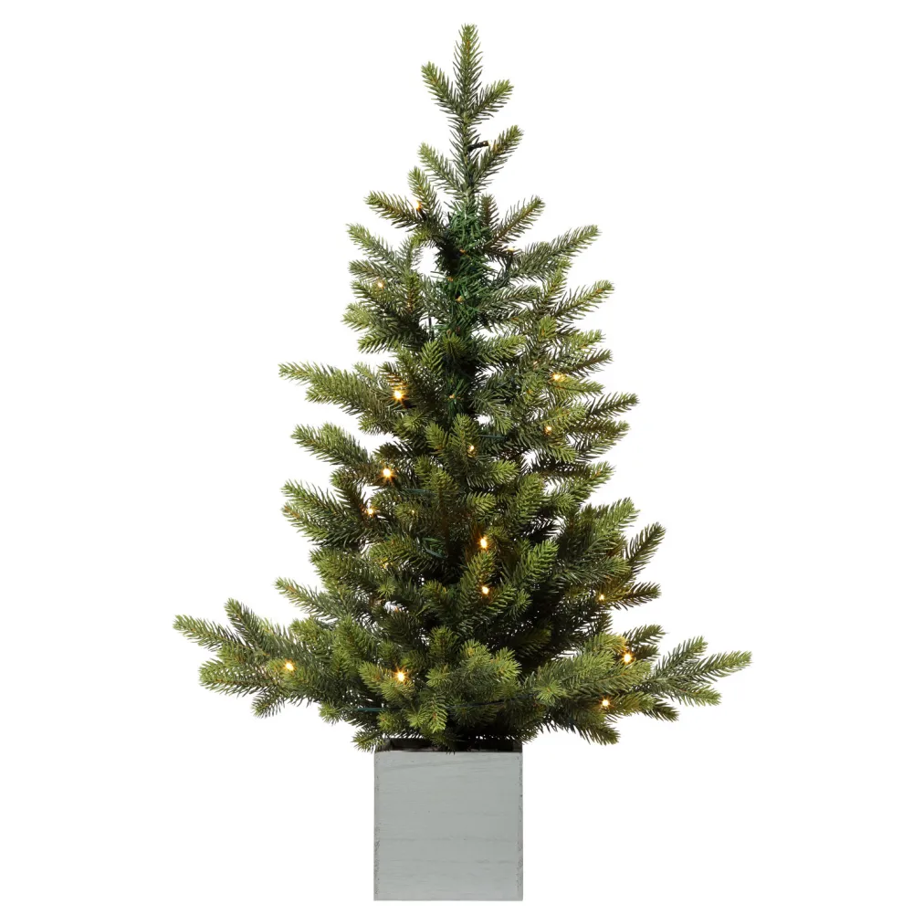 This 30-Inch Fraser Fir Tree Is The Perfect Way To Celebrate The Holidays. Potted In A Warm Gray Wooden Container And Adorned With 35 Warm White Led Lights, This Life-Like Tree Is An Ideal Accent Anywhere In Your Home. The Perfect Size For Bedrooms, Gracing A Fireplace, On A Foyer Table Or Kitchen Island. The Battery-Operated Lights Mean No Cord To Worry About, And The Timer Means It Will Come On Everyday At The Same Time.