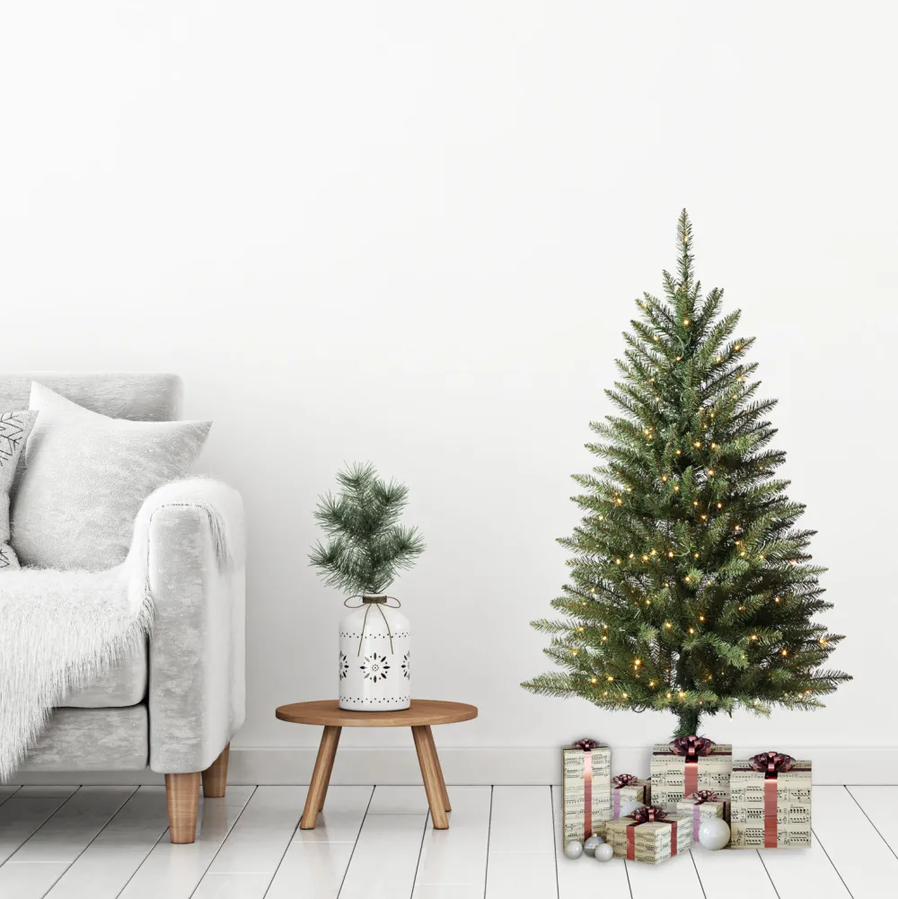 Christmas Defined – The Thick And Full Prelit Dumont Is The Ideal Tree For Your Celebration. This 4-Foot Tall Tree Has 200 Warm White Led Lights For The Perfect Glow To Accent Your Treasured Ornaments. The Faux Needles Are Tapered At The Tips, Just Like A Real Tree But No Dropped Needles Here. It Only Takes Minutes To Shape The Hinged Branches With 260 Tips Into The Perfect Tree, And Its 4-Foot Size Makes It Perfect For Small Spaces Or Flanking A Fireplace.