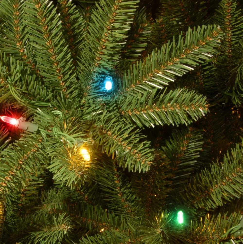 This Christmas Tree With Multi-Colored Lights Features A Slim Profile That May Be A Better Fit For Corners Or Areas With Limited Space. It Is Pre-Strung With Multicolor Lights That Remain Lit Even If A Bulb Burns Out. This Three-Section Tree Features Hinged Branches For Ease Of Assembly. The Sturdy Folding Metal Tree Stand Is Included.