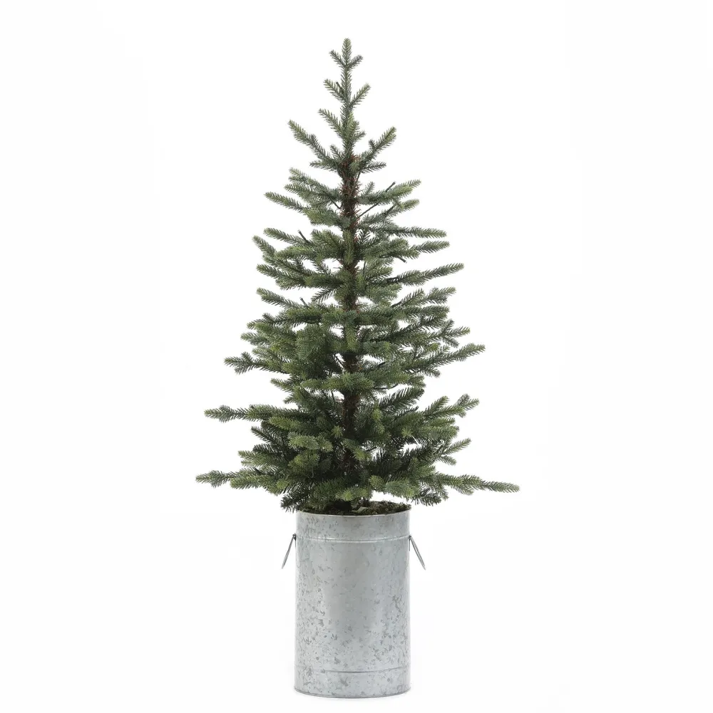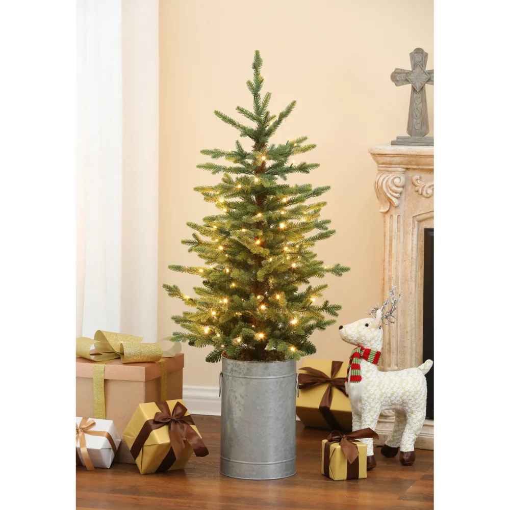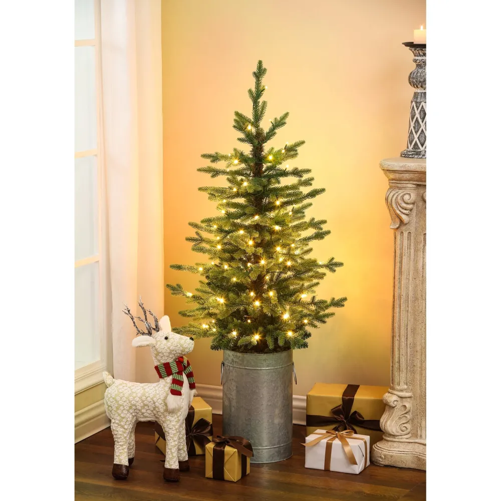 This Pre-Lit, Faux Christmas Tree Brings A Festive Farmhouse Feel To Your Space, No Matter The Size. It’s A Fraser Fire Made From Stainless Steel And Aluminum, With Two Hinged Pieces For Easy Setup. It Measures 4′ Tall (With The Included Stand), And Its Wintry Forest Silhouette Fills Out With Realistic Green Pvc/Pe Blend Pine Needles. We Love That This Artificial Tree Comes With 100 Warm White Led Lights For Some Christmas Magic Twinkle. Plus, It Comes With A Cylindrical Potted Stand Crafted From Metal To Complete The Country Look. Great For Studios And Smaller Apartments.