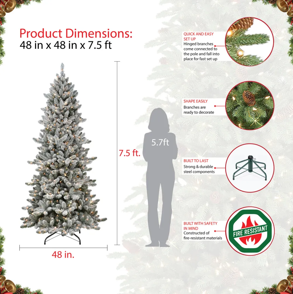 This Pre-Lit, Faux Holiday Tree Provides Just The Right Natural Feel For A Coastal Farmhouse Christmas. Standing Over 7′ Tall, It Has A Slender But Robust Shape Created With Three Sections With Hinged Branches. The Realistic Green Pvc Pine Needles Are Dusted With A White Snow Flocking That Gives Your Living Room The Look Of A Wintry Forest. We Love That It Comes With 1088 Branch Tips, So There’s Plenty Of Room For Hanging Ornaments. Best Of All? This Christmas Tree Comes With A Stand, As Well As 400 Warm White Lights, Pre-Strung For Your Convenience.