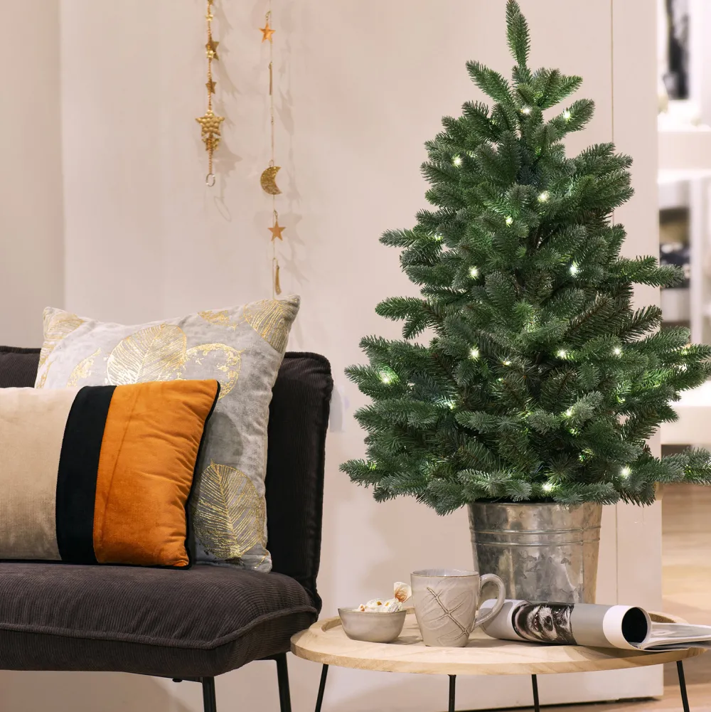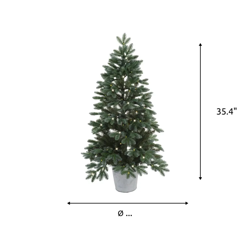 This Faux Christmas Tree Is Ideal For Space-Conscious Rooms, Homes, Or Dorms. It Stands Just Over 35″ Tall And Sits In A Zinc-Tone Pot. We Love That It Is Adorned With 100 Battery-Operated Micro Led Lights That Shine Clear And Steady (Batteries Sold Separately). The Branches And Needles Are Made From Green Pvc Plastic And Have A Full, Lush Appearance. Create A Festive Display In Your Front Window Or In Your Living Room With This Authentic-Looking Spruce Tree. It May Require Shaping And Fluff Right Out Of The Box.