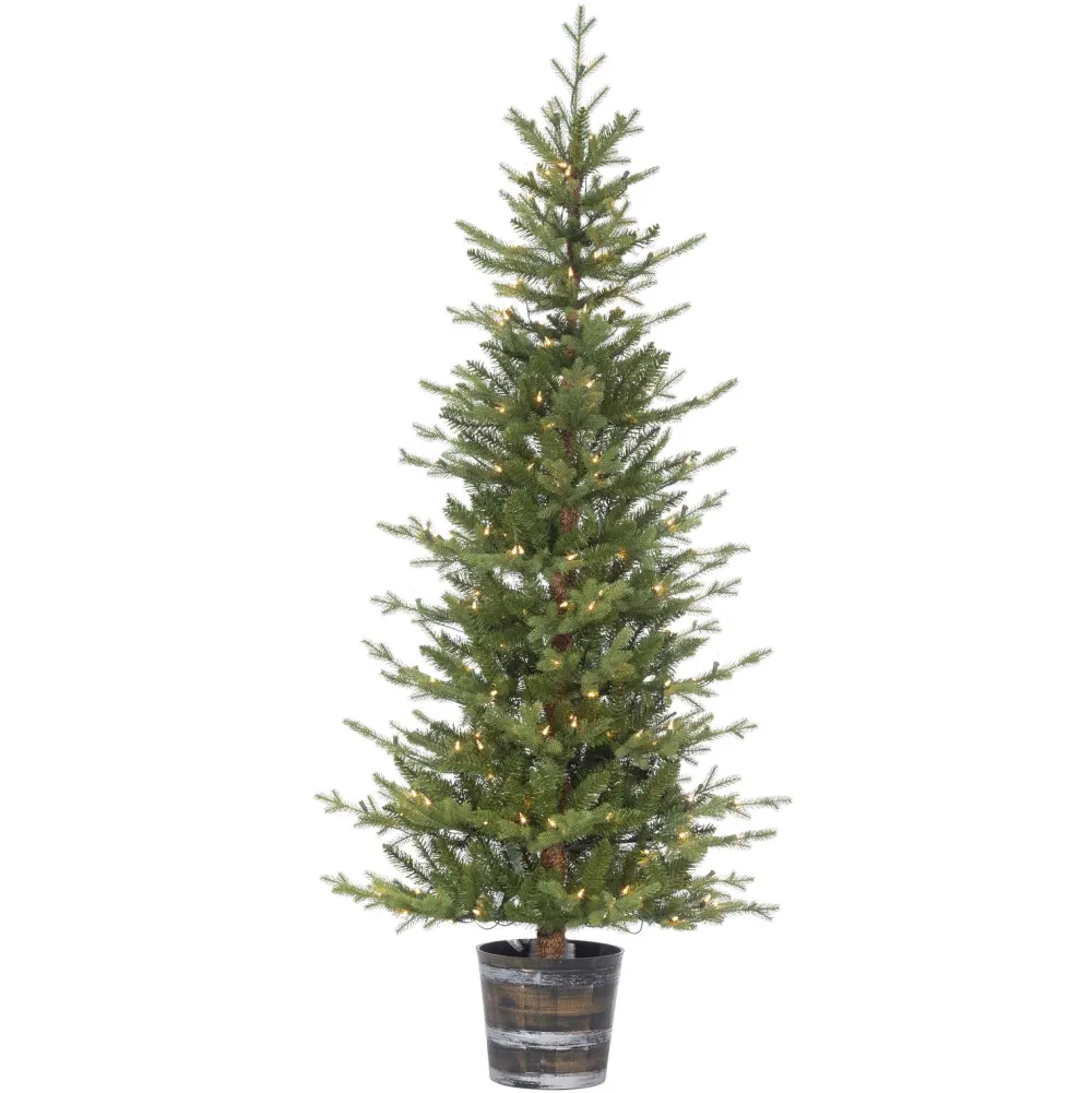 A Mix Of Coastal And Farmhouse Defines This Natural-Looking Artificial Christmas Tree, Made To Look Like Freshly Cut Pine. It Comes With Hundreds Of Hinged Branch Tips In A Natural Green Hue, And They’Re Pre-Strung With Stay-Lit Bulbs That Give Off A Steady Clear White Glow For Plenty Of Holiday Cheer. This Faux Christmas Tree Rests In A Decorative Barrel-Style Pot For Extra Stability While Bringing A Bit Of Vintage-Inspired Flair To The Design. The Tree Itself Is Made From A Blend Of Pe And Pvc Materials That’s Weather-Resistant, So It’s Safe To Set Up Outside As Well As Indoors.