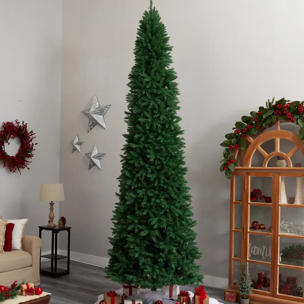 Incorporate Seasonal Evergreens Into Your Decor Scheme This Holiday – Even In The Tightest Spaces! – With The Help Of This Artificial Christmas Tree. Entirely Maintenance-Free, It Features A Slim, Tight Silhouette Made Up Of Mountain Pine Greenery With 3235 Easy-To-Bend Branches For Showcasing All Your Holiday Ornaments And Arrives Pre-Strung With 1100 Clear Led Lights To Help Eliminate The Hassle Of Tangles Or Knots. Guaranteed To Make Holiday Decorating Stress-Free, This Slim-Fitting Artificial Christmas Tree Stands Tall And Proud At 12Ft., Stabilized On A Metal Stand For Effortless Display All Season Long. Faux Christmas Trees Are Manufactured Using Synthetic Materials, Such As Polyester Material Or Plastic, And Are Well Designed And Constructed To Be Life-Like In Appearance. This Item Will Need To Be Re-Shaped When Removed From The Security Box To Allow It To Reach Its Fullest Size. Your Artificial Christmas Tree Will Look Beautiful For Years To Come; Simply Wipe It Clean With A Soft Dry Cloth When Needed.
