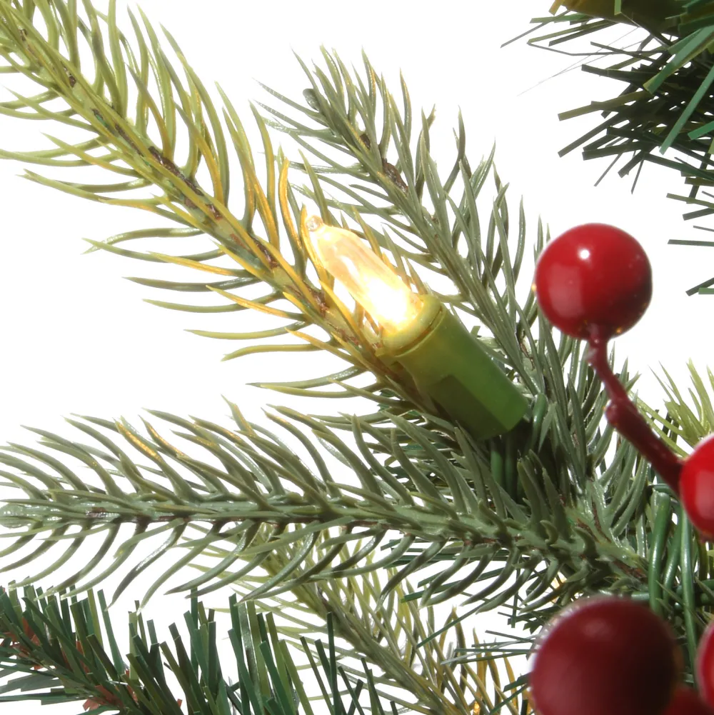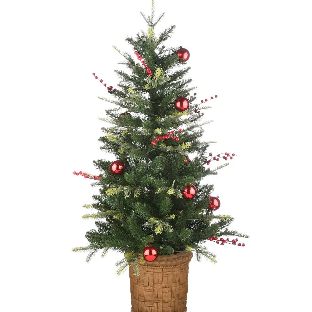 The Scotch Creek Fir Features Feel Real® Branch Tip Technology, Creating A Tree With Remarkable Realism. These Crush-Resistant Branch Tips Are Molded From Real Tree Branches For An Authentic Living Tree Appearance. This Attractive Planting Is Pre-Strung With 70 Warm White Led Lights And Seated In A Decorative Base With A Basket Weave Design. It Is Trimmed With Red Ball Ornaments And Red Berries For Added Appeal. Display In Indoor Or Covered Outdoor Locations.
