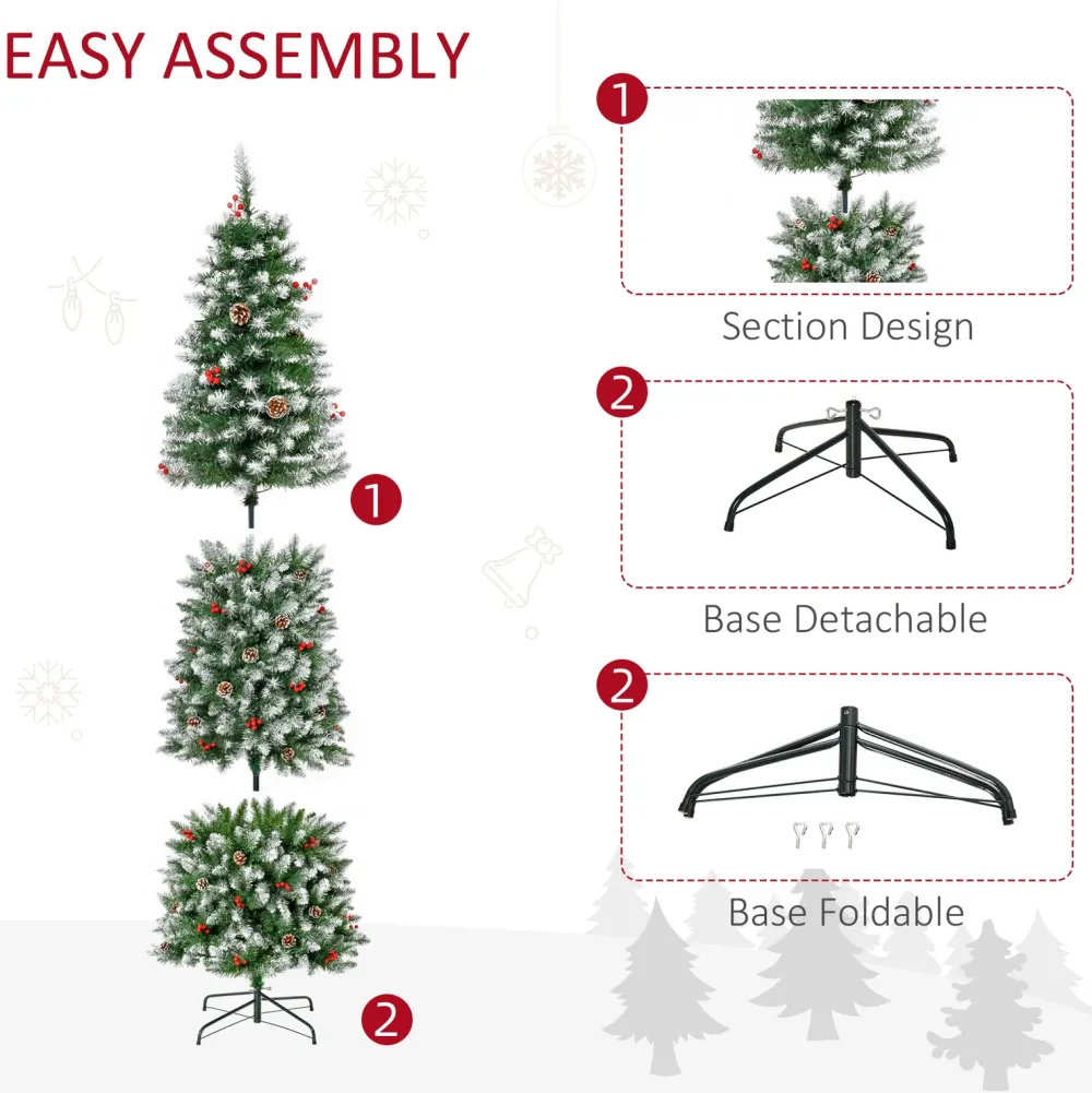 - Full Branch Tips: Enjoy Holiday Decor Without The Mess With This Artificial Christmas Tree. The Full-Body Tree Shape Is Provided By 618 Plentiful Plastic Branch Tips For A Lifelike Look. Includes Red Berries And Pine Cones For Added Decoration.