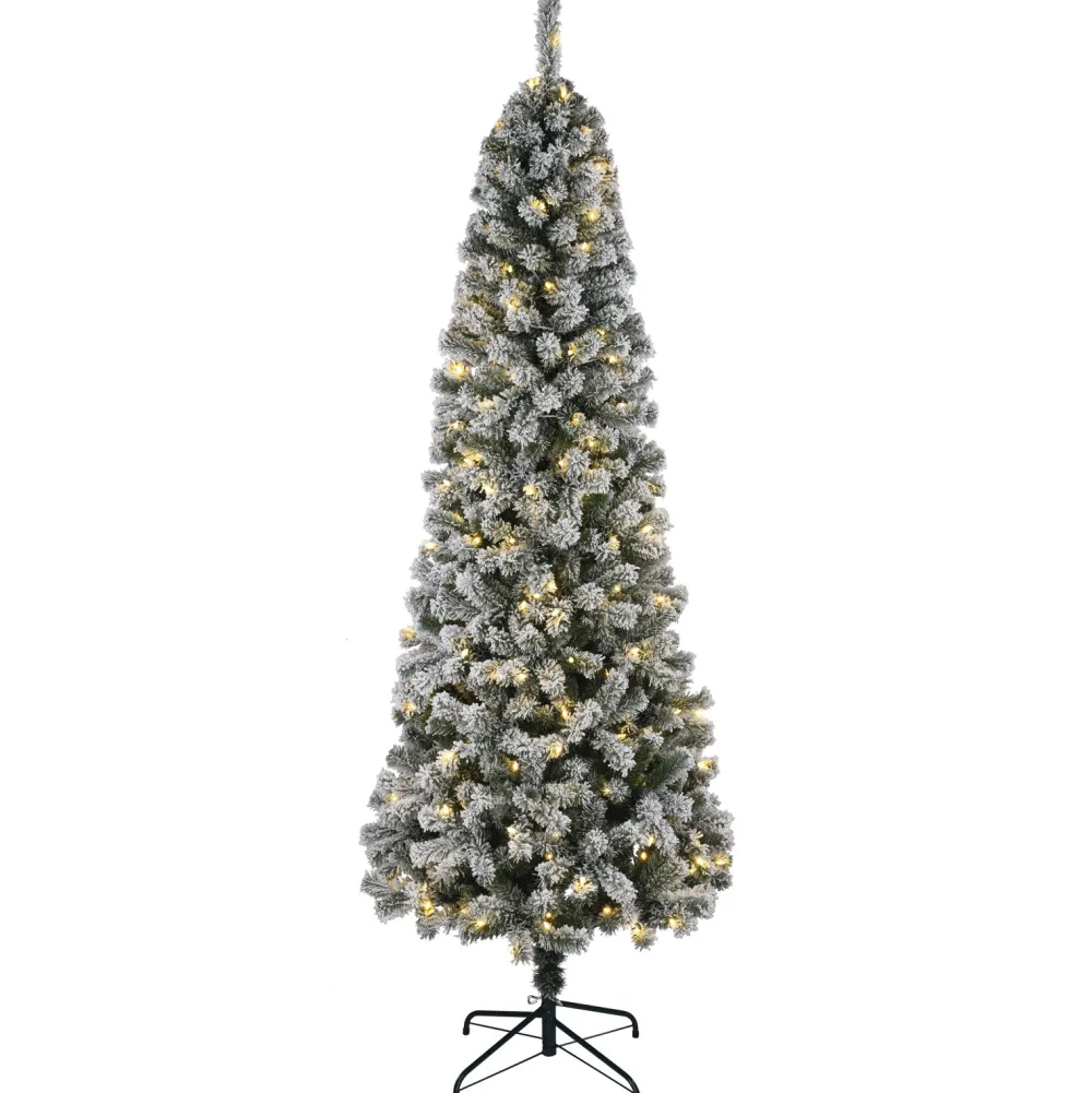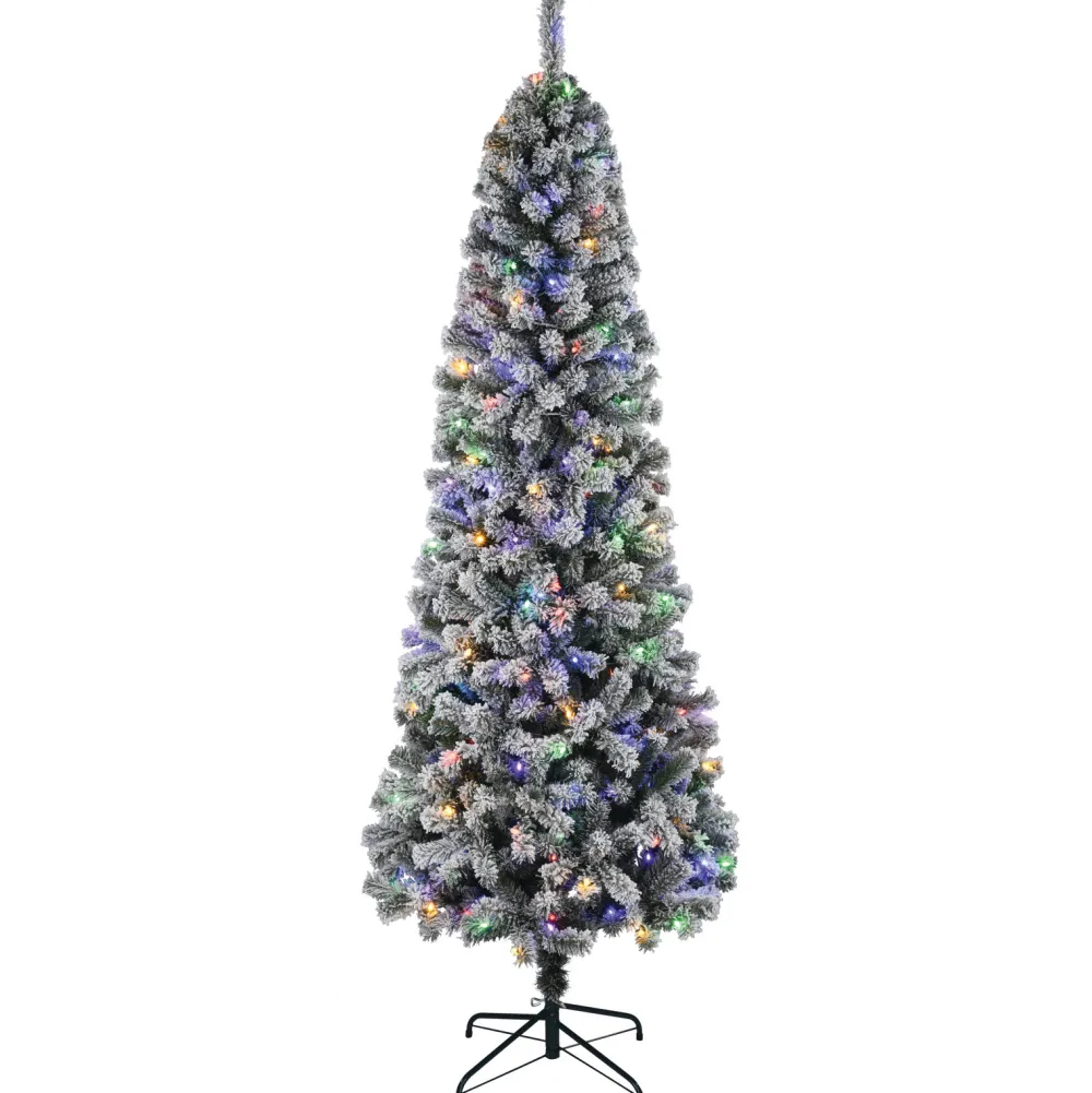 This Douglas 7′ Slim Flocked Pvc Fir Artificial Christmas Tree With 200 Dual Color Lights And A 20 Inches Metal Stand. This Tree Is Pre-Strung With 200 Lights That Change From Warm White To Multi-Color With The Touch Of A Button. The Bulbs Are Low Voltage Leds That Are Energy-Efficient And Long Lasting. Included Is A Foot Pedal Switch To Control Light Colors.