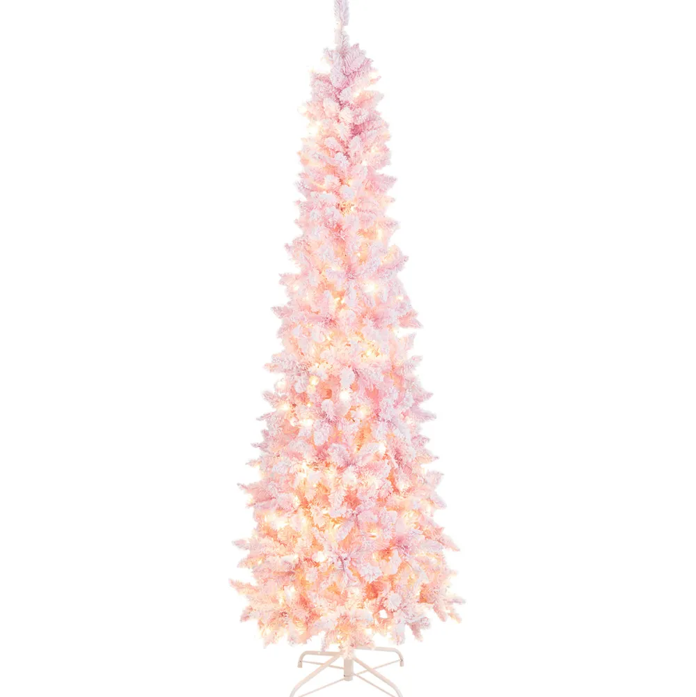 Enjoy The Happiness Of Christmas!Our Pre-Lit Artificial Christmas Tree Measures 3.9 Ft X 7.5 Ft (Dia. X H) And Features 1100 Dense Branch Tips, Which Are Luxurious And Vivid While Providing Enough Space For Hanging A Variety Of Beautiful Ornaments, And You Can Enjoy Happy Decorating Time With Your Family. Instead Of Using Ordinary Green Or Snow White, Our Xmas Tree Adopts Pink Colors, Giving It A More Eye-Catching And Beautiful Look. And Covered By Beautiful Flocked Snow, The Tree Looks Vivider. The Leaves Are Made Of Durable And Flame-Retardant Pvc Material, Ensuring A Long Service Life. More Than That, It Is Designed With 450 Pre-Strung Warm White Led Lights In 8 Lighting Modes, Making The Night Full Of A Holiday Feel. The Branches Are Connected With The Trunk By Convenient Hinges, Which Can Automatically Spread Out, Saving Your Time And Energy On Installation. Whether As A Holiday Decoration In Your Home, Office, Or School, Or As A Wedding, Birthday, Or Ceremony Decoration, Our Pink Christmas Tree Can Be A Perfect Choice!