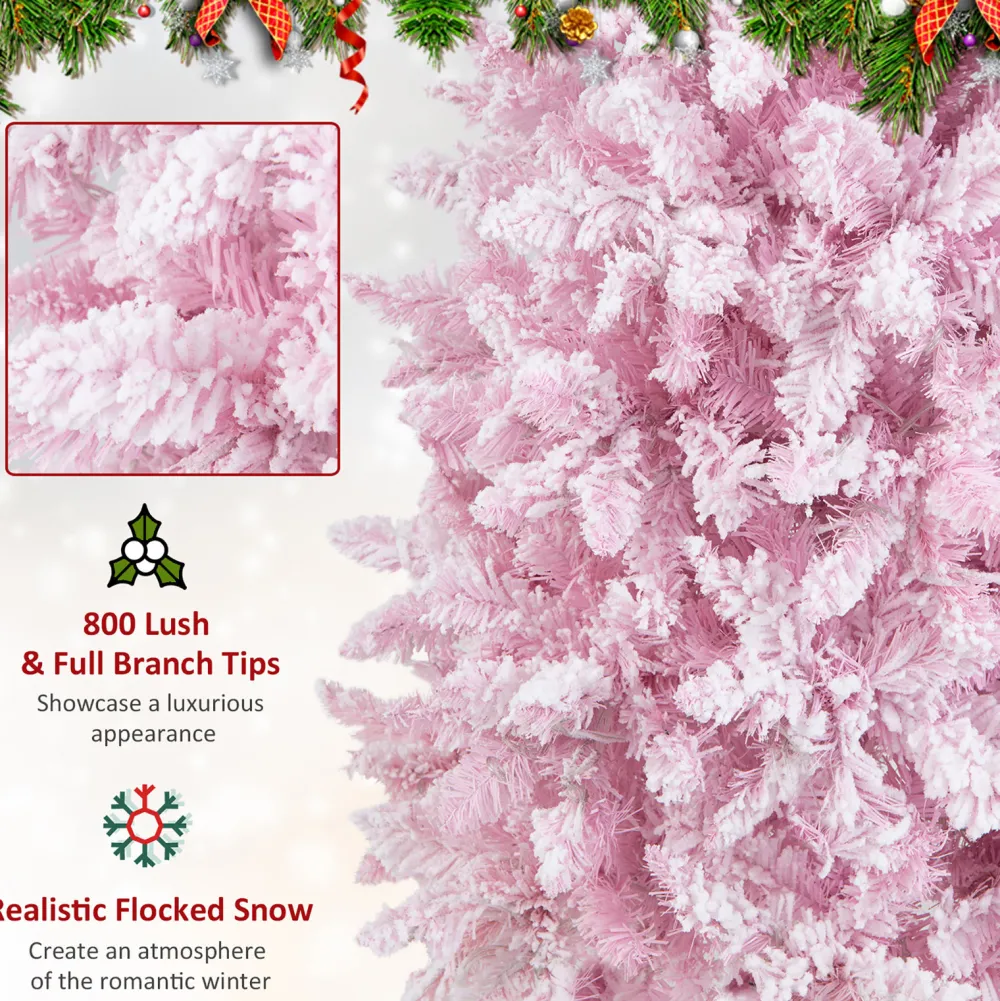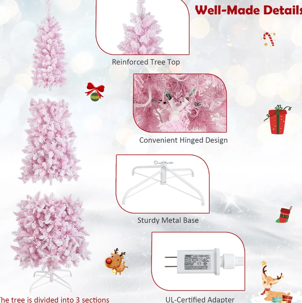 - 800 Fluffy Branch Tips And Flocked Snow Design Make The Tree More Vivid And Natural.The Bright Pink Appearance Adds A Touch Of Romance To Your Living Space.300 Warm White Led Lights Are Pre-Strung And Evenly Scattered On The Branches.