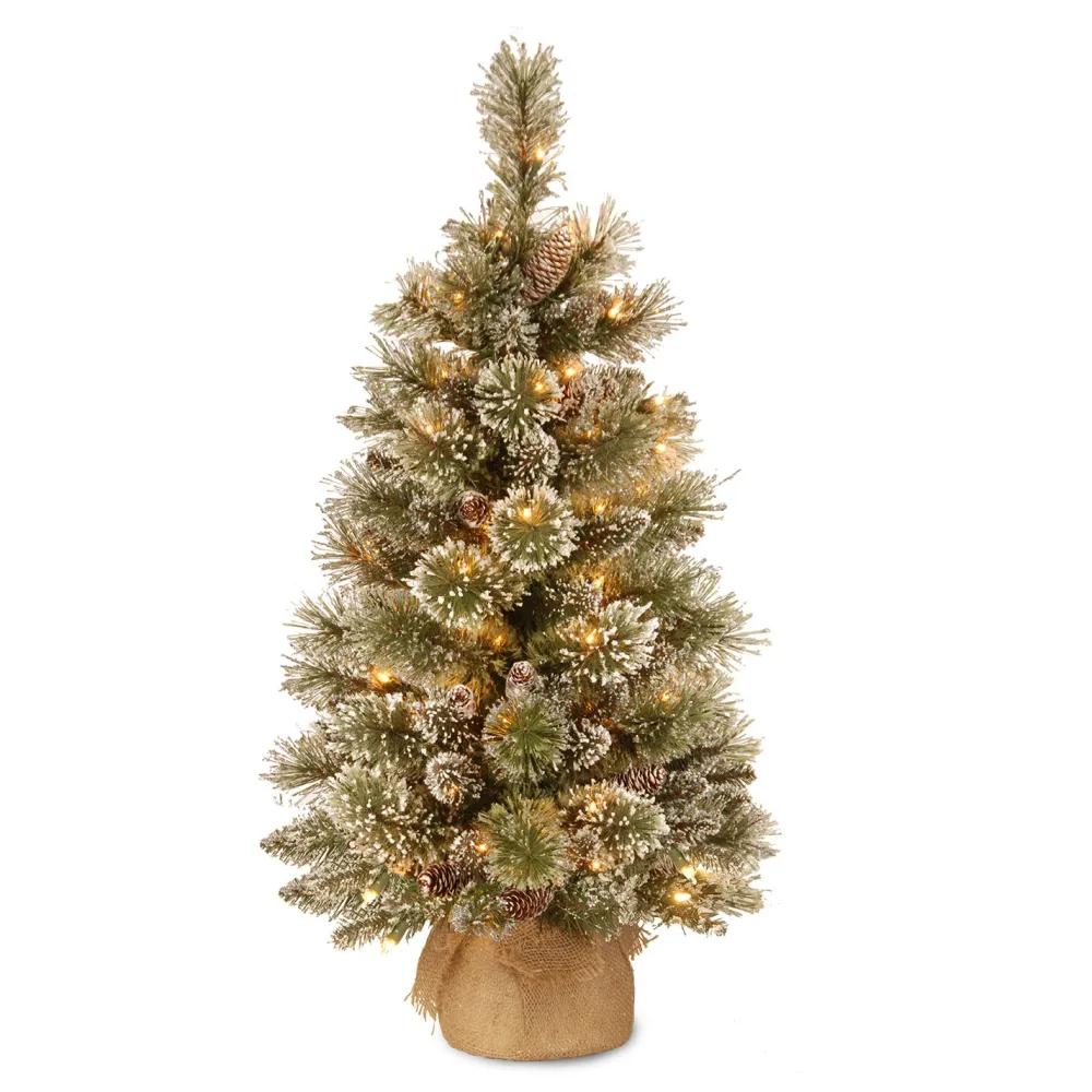 This Pine Is A Mixed Branch Tree With Glittered Tips For Added Sparkle. Seated In A Burlap Bag Base, This Tree Is Trimmed With White-Tipped Pine Cones. Display In Indoor Or Covered Outdoor Locations.