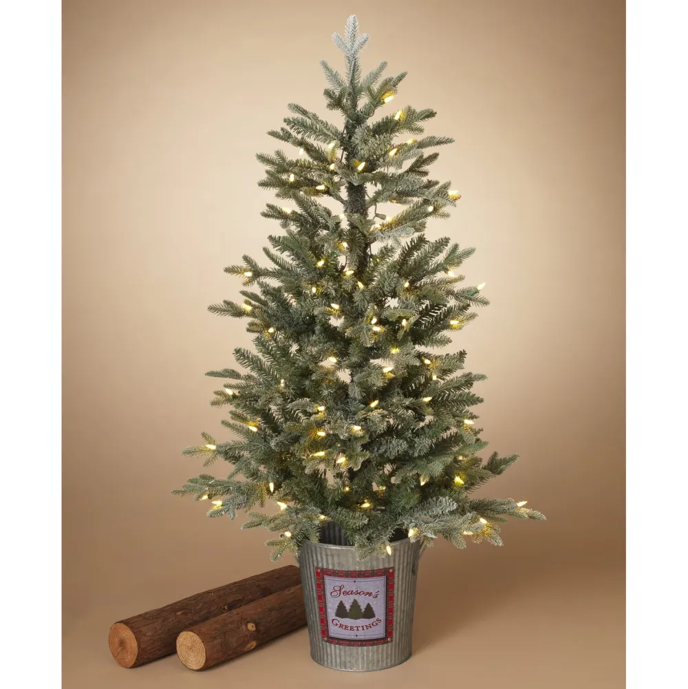 - Corrugated Metal Buckets With Concrete-Like-Hold Will Securely Let You Display This Tree On A Porch Or High Traffic Area