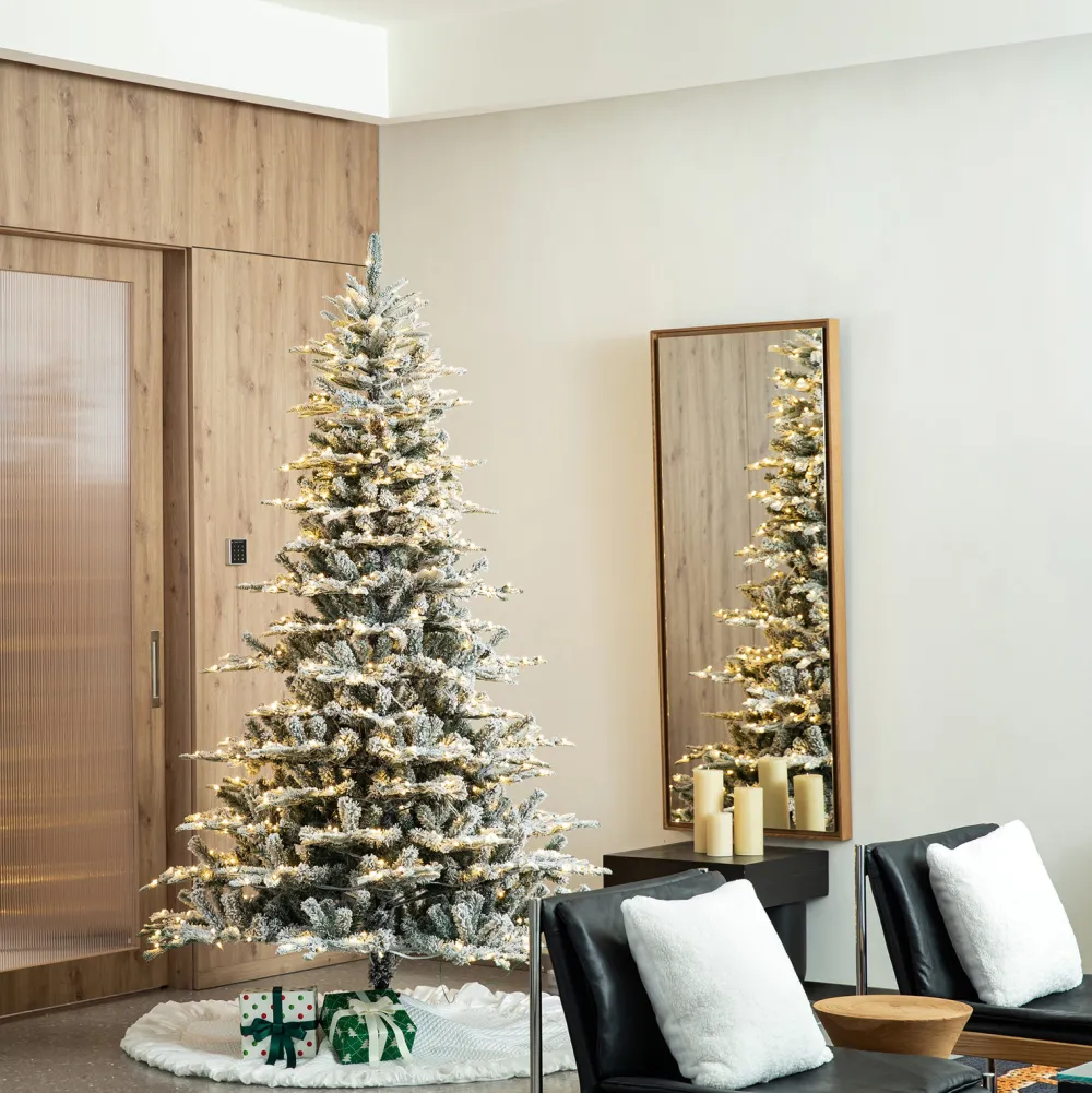 - Flocked Layered Structure,Realistic 3D Pine Branches And Pre-Lit Warm White Led Light Bulbs