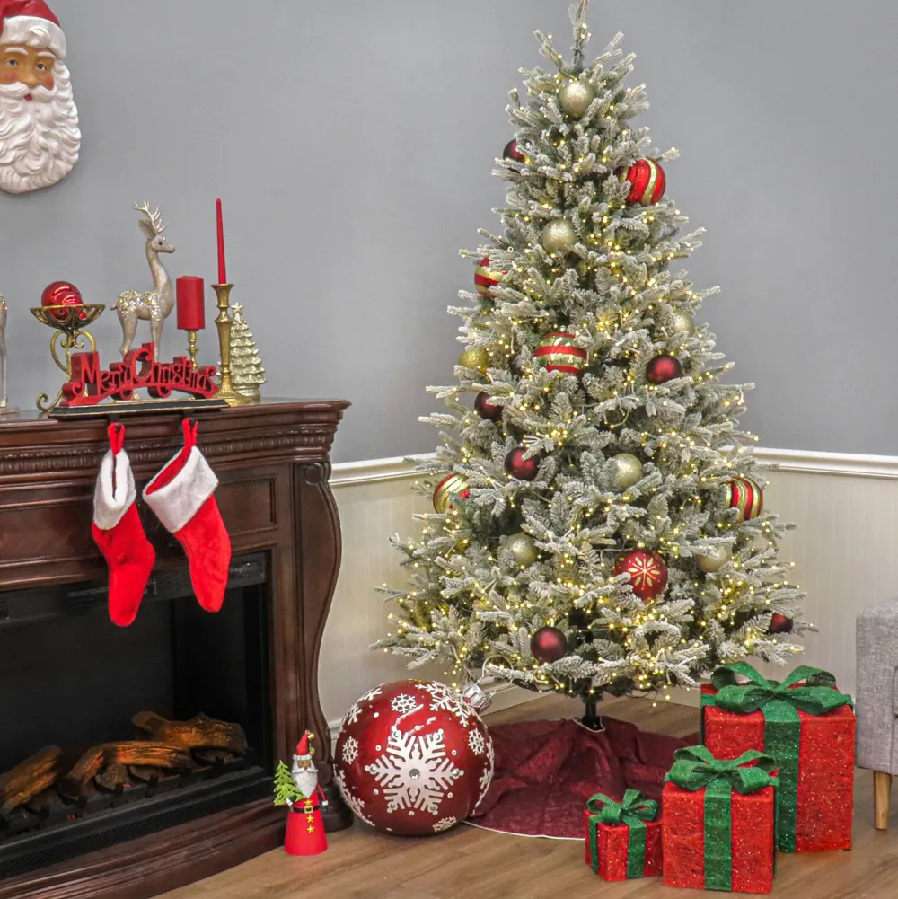 This Artificial Balsam Fir Christmas Tree Features Flocked And Frosted Branches That Help Make Your Living Room Feel Like A Winter Wonderland. It’s Made From Pvc With Realistic Green Branches, And It Has A Full Shape And Lush Foliage For A Traditional Look. This Tree’s Frosted Details And Included Colorful And Clear White Lights Create Just The Right Foundation For All Your Favorite Christmas Ornaments. Plus, The Lights Are Easy To Turn On And Off With An Included Footswitch. This Tree Also Comes With A Black Steel Base To Help It Stand Upright.Hand-Curated By Kelly Clarkson.