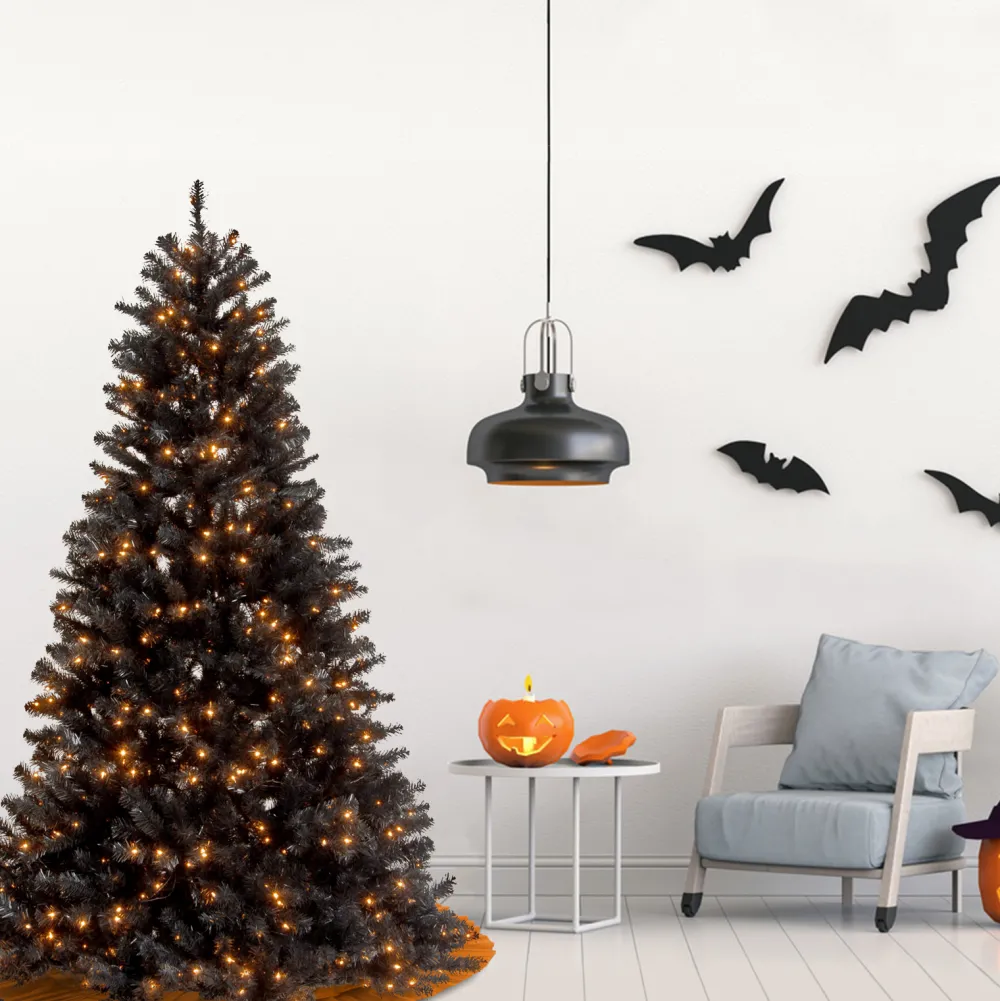 The Offutt Black Spruce Is An Interesting And Engaging Alternative To The Traditional Green Holiday Tree. It Offers A Slightly Thinner Profile That May Be A Better Fit For Areas Where Space Is Limited. This Spruce Tree Is Pre-Strung With 500 Clear Lights That Remain Lit Even If A Bulb Burns Out. This Three-Section Tree Features Hinged Branches For Ease Of Assembly. The Sturdy Folding Metal Tree Stand Is Included. Ideal Tree For Halloween Celebrations!